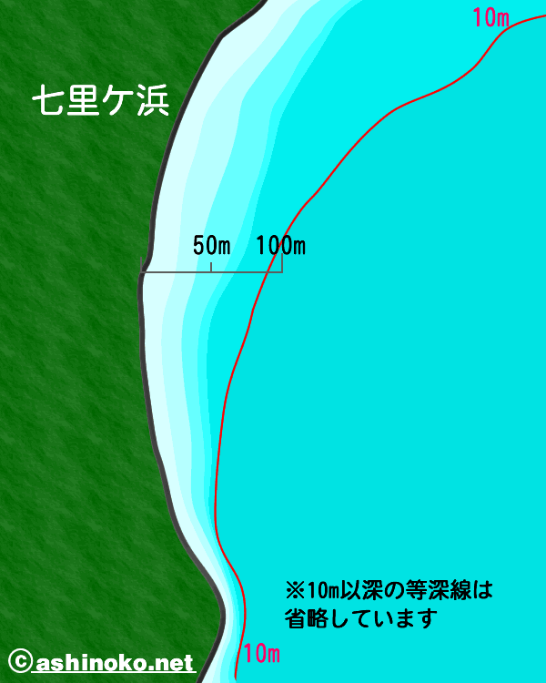 七里ケ浜 浜状になっているポイントは、早朝は岸ギリギリに魚がいる場合が少なくありません。早朝を過ぎると、小さな岩やウィードがある所を攻める事になります。