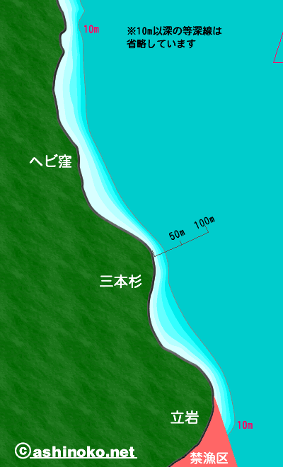 なお、立岩より先は禁漁区。立て看板があり、水上にはロープを張ったブイがありますので、その中には絶対に入らないようにしてください。漁協の船がすぐに来て、単なる注意では済まなくなります。